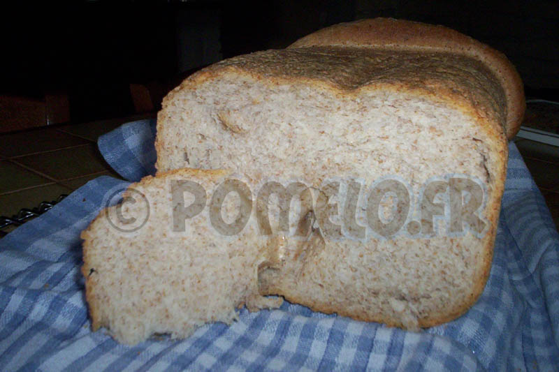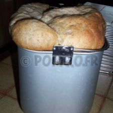 Juste une petite remarque : là c’était un pain de 750 gr et la pâte touchait quasi le hublot avant la cuisson. Je n’ose imaginer ce que cela aurait donné si j’avais fait un pain d’1 kilo … :P