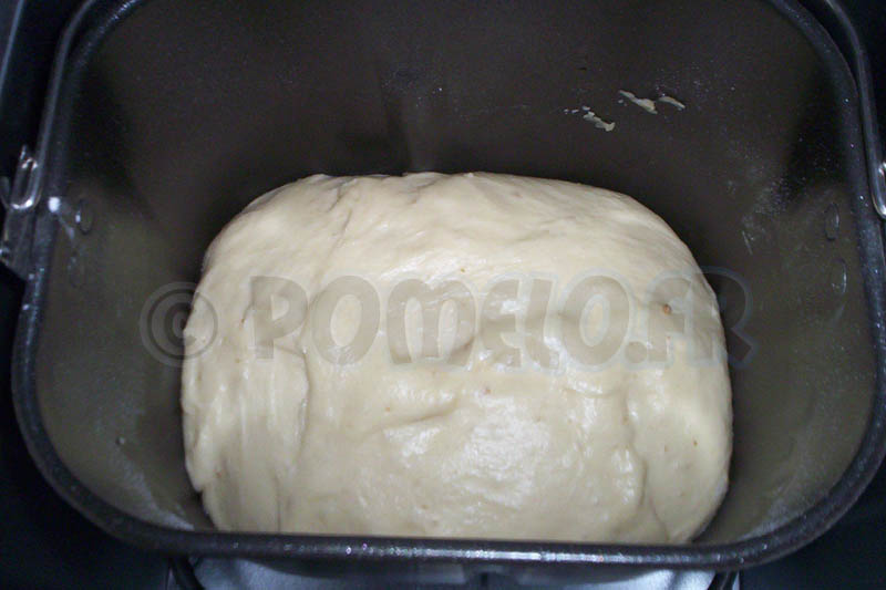 Ajouter le reste de la farine, y creuser un petit puits et y mettre la levure. Fermer la MAP et lancer le programme pâte (8)