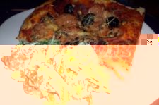 Donc pour moi (à gauche), c’était jambon, champignons de paris, olives noires (épicées aux herbes de provence) et fromage râpé.