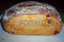 Remarque : Pour cette recette, je n’ai pas utilisé de poivrons frais mais un reste de poivrons en bocal (je ne suis pas fana des conserves mais cela m’a été offert). Donc, qui dit conserve dit très humide. J’ai donc du ajouter un peu de farine car à cause de l’humidité des poivrons, mon pâton était devenu beaucoup trop collant. Ces poivrons en conserve sont donc aussi la raison pour laquelle mon pain est couleur poivron : il s’est fondu dans la pâte …