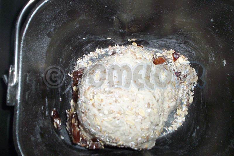 Dans la cuve de la MAP, mettez la Biga puis ajoutez les petits suisse, le sel fin, le miel, l’eau et beurre fondu (mais pas chaud). Ajoutez les farines et mettez la levure dans un petit puits au centre. Lancez le programme « pâte ». Lorsque la pâte est bien formée (environ 10 minutes avant la fin du pétrissage) , ajoutez les dattes et les céréales. Laissez le cycle se terminer.