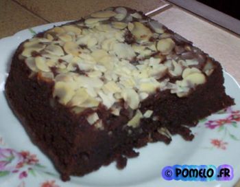 Prendre un moule rectangulaire ou carré et le beurrer. Etaler les amandes effilées dans le fond et verser la préparation au chocolat par dessus sur environ 4cm d’épaisseur.