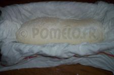 Pour ma part, j’utilise une corbeille allongée en osier que je tapisse d’un torchon fariné. J’y place ma pâte soudure en haut et je replie la serviette sur le pain sans serrer.