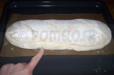 Retournez la pâte sur une plaque sulfurisée et faîtes vos incisions. En ce moment, j’ai une préférence pour une incision sur la longueur de la pâte en bas et 3 coups de lame sur le dessus. L’incision du bas fait superbement craquer le pain en cours de cuisson puisqu’il monte encore !