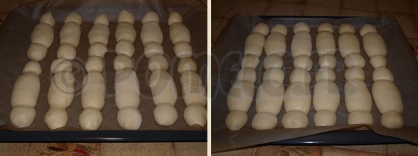 Coupez 12 pâtons d’environ 85 gr et façonnez-les en petits pistolets.