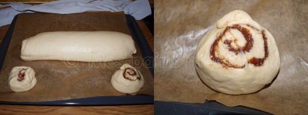 Si vous le souhaitez, vous pouvez couper les extrémités pour que ce soit plus net. Dans ce cas, disposer les deux « escargots » sur la plaque assez loin de la brioche.